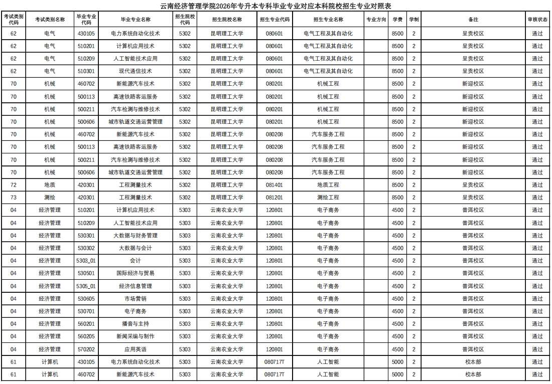 原文标题:云南经济管理学院关于2026年专升本专科毕业专业对应本科院校招生专业信息的公示