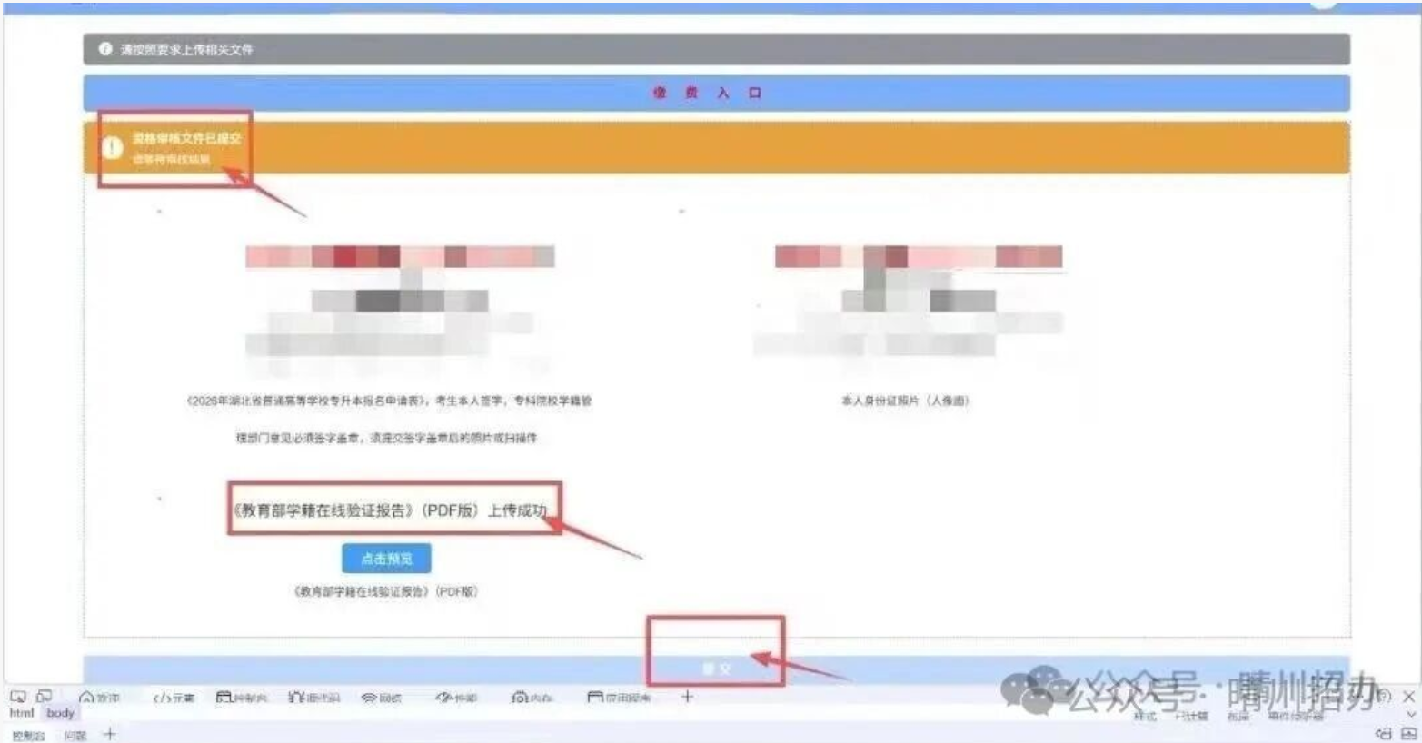 (1)《2026年湖北省普通高等学校专升本报名申请表》,考生本人签字,专科院校学籍管理部门意见必须签字盖章,须提交签字盖章后的照片或扫描件;