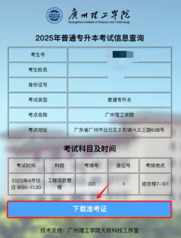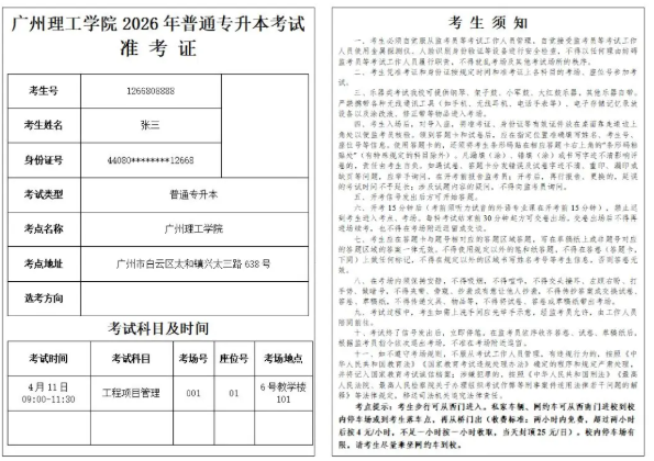 广州理工学院2026年普通专升本考试准考证下载指南
